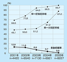 日本の体外受精胚移植周期数は20年前の草創期、すなわち数施設が海外での成功例を基に手探りで治療を開始した時期に比し爆発的に増加し、年間10万周期以上実際されるにいたっている。